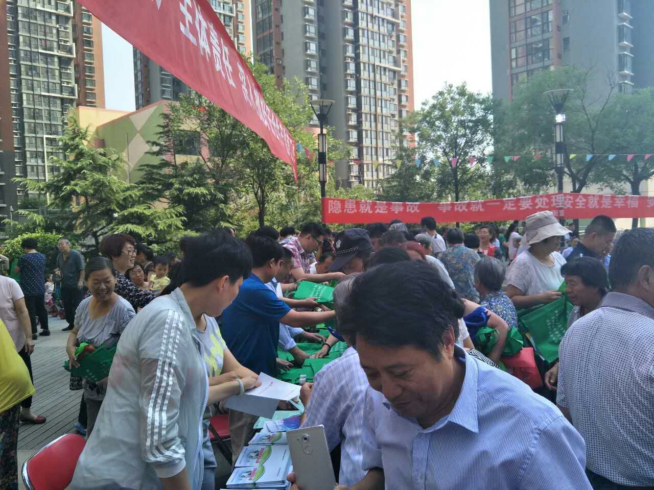 为落实市、区规划国土局关于开展物业管理小区安全生产月活动的通知要求,进一步提高辖区群众的安全意识和防灾救灾能力。2017年6月26日,怡合物业公司协同新北街道办事处在贻成尚北小区举办了以“安全生产”和“远离毒品”为主题的宣传活动。活动现场,向广大群众发放了宣传单、宣传册和宣传袋等宣传材料。怡合物业公司下属的贻正嘉合、贻成峰景、渤海度假村、贻成尚北等项目管理处的工作人员和维护主管协助做好相关工作。